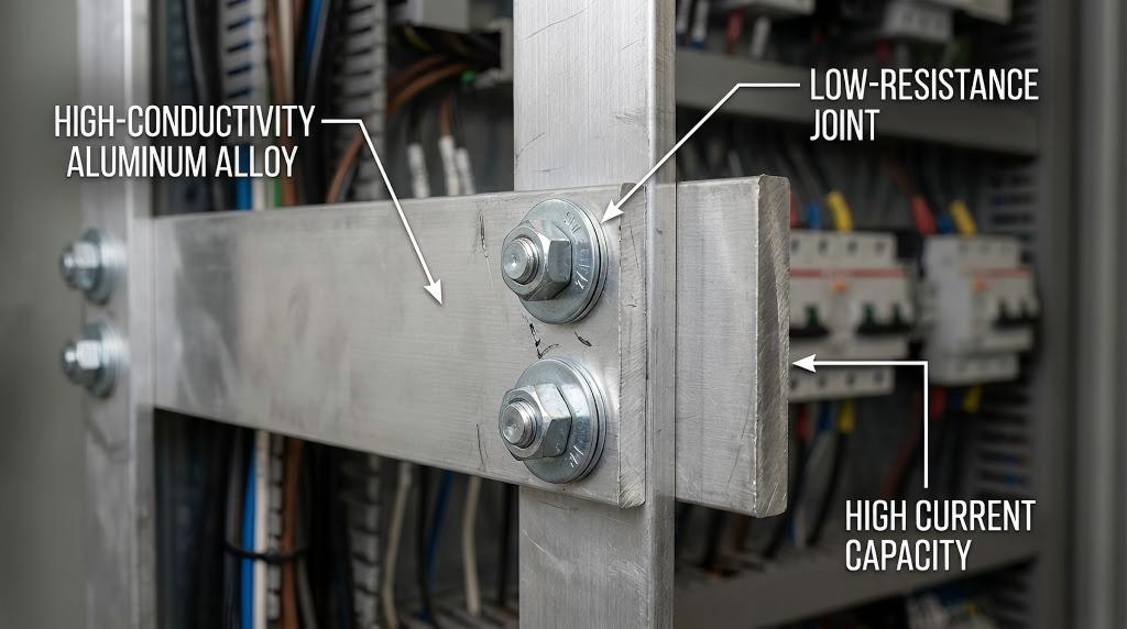 The engineering case for aluminum busbars rests on two pillars: Specific Conductivity and Economics.