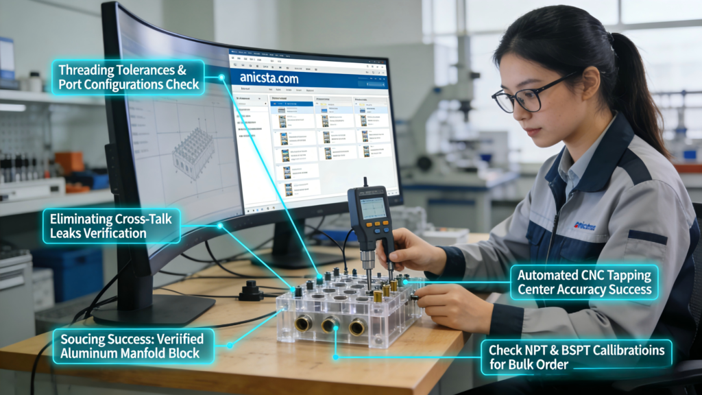 We utilize highly versatile CNC tapping machinery. We can easily machine standard internal threads ranging from tiny M5 metric ports up to massive 1-inch NPT or BSPP main supply gallery threads. We ensure complete compatibility with all global pneumatic fitting standards.