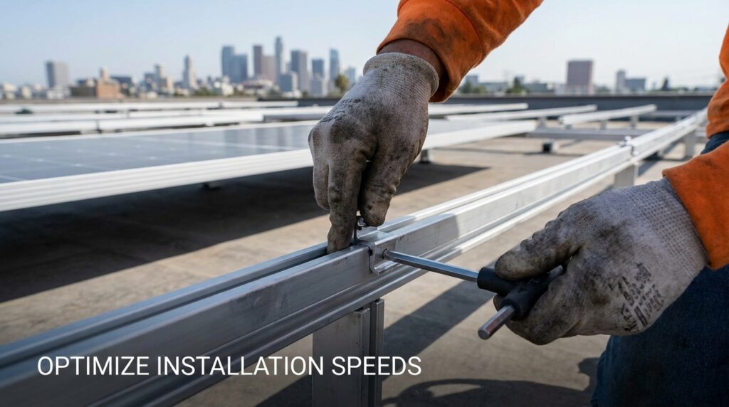 | Adjustable Mid Clamps | Supreme. Accelerates massive commercial installations natively. Technicians drop the clamp directly between two adjacent panels, securing both modules simultaneously with one single bolt tightening action safely. | High. Distributes torque evenly across two separate solar panel frames natively. Utilizes specialized serrated teeth to bite into the anodized aluminum, ensuring neither panel shifts under heavy snow loads completely. | Flexible. Features innovative spring-loaded designs and adjustable threaded mechanisms natively. Adapts seamlessly to diverse frame heights ranging from 30mm to 45mm without requiring separate inventory SKUs securely. |