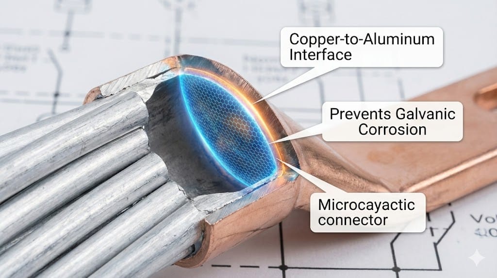 | Galvanic Corrosion Risk | Zero (Safely bridges Al to Cu) | Extreme (When paired with Al cable) | Extreme (When bolted to Cu busbar) |